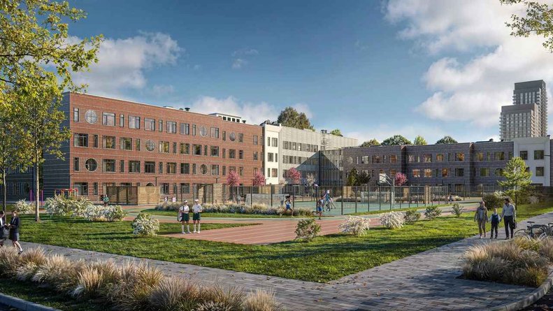 Во дворах смонтированы детские площадки и спортивные зоны. Среди объектов инфраструктуры два детских сада и две школы.