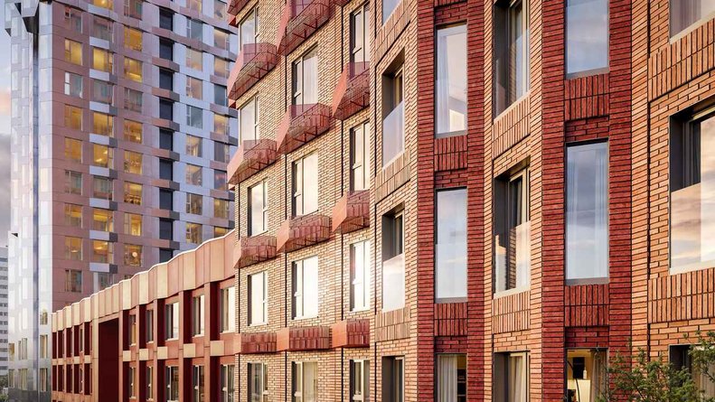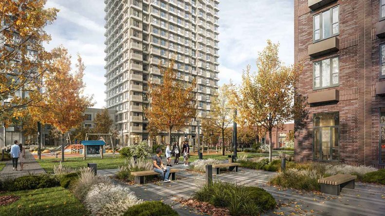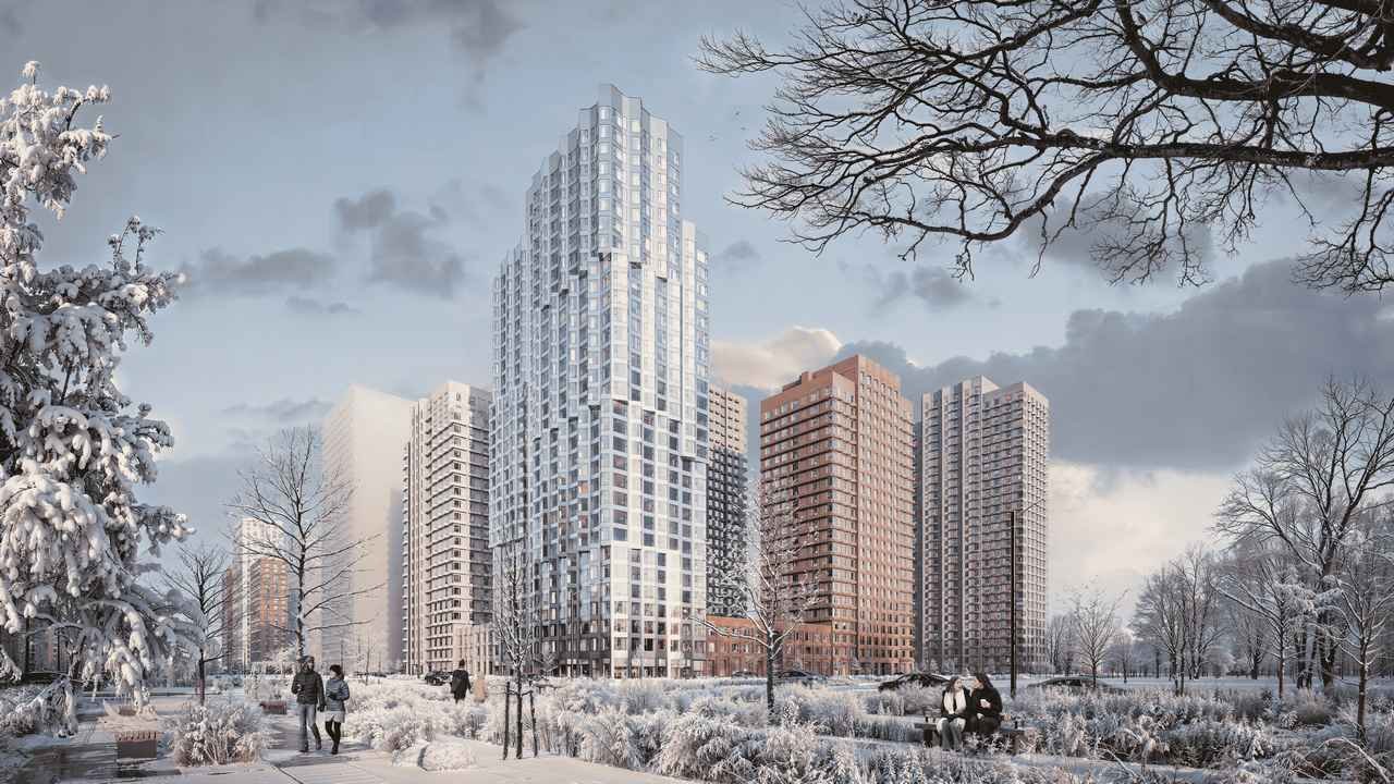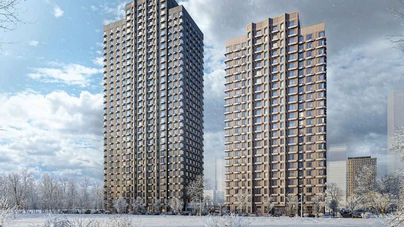 Несколько очередей сформируют квартал единообразный. Высота корпусов варируется от 20 до 33 этажей. Фасады зданий оформлены вы традиционной для компании «ПИК» манере: подвесные фасады с облицовкой керамогранитом и многослойным утеплением.