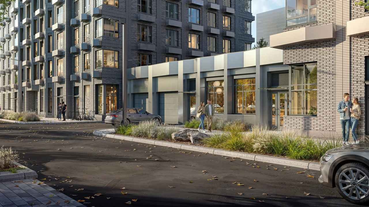 Территорию благоустроят в концепции двор-сад, а вдоль всего проекта проложат несколько пешеходных бульваров. Во дворах установлены столы и скамейки со встроенными зарядными устройствами. На подземном этаже предусмотрен паркинг и индивидуальные кладовые.