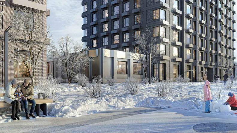 Чтобы прогулки во дворе были приятными и безопасными, на территории проекта предусмотрена «медленная зона» для электросамокатов. В период с 07:00 до 24:00 их скорость автоматически снижается до 15 км/ч.