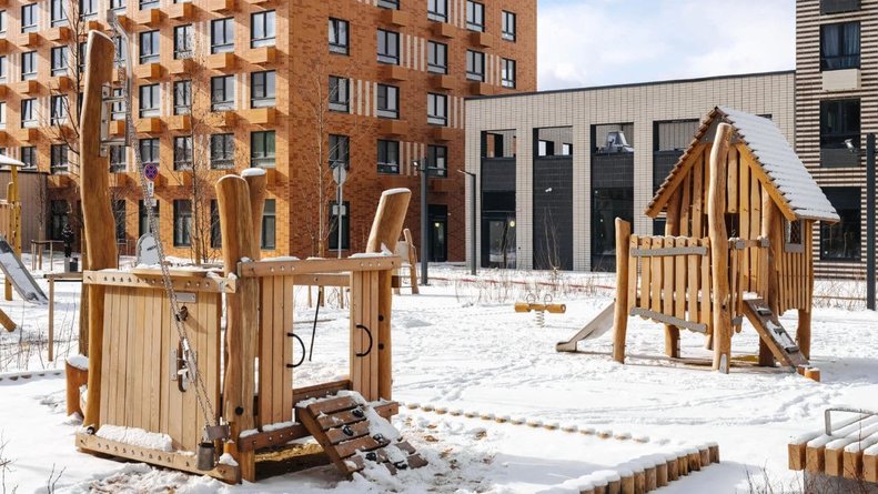 В зону застройки попало несколько прудов. Застройщик очистит водоемы и благоустроит набережные, оборудует зоны отдыха. Чтобы прогулки во дворе были приятными и безопасными, на территории проекта предусмотрена «медленная зона» для электросамокатов. В период с 07:00 до 24:00 их скорость автоматически снижается до 15 км/ч.