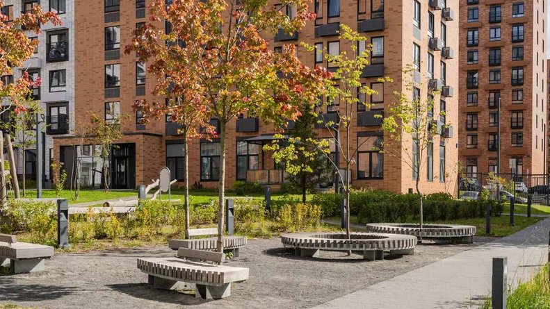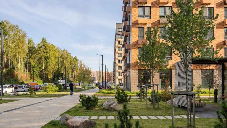 Чтобы прогулки во дворе были приятными и безопасными, на территории проекта предусмотрена «медленная зона» для электросамокатов. В период с 07:00 до 24:00 их скорость автоматически снижается до 15 км/ч.