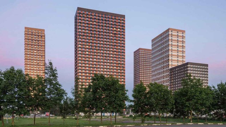 Квартирный фонд сформирован из студий, одно-, двух- и трехкомнатных лотов площадью до 84 м².